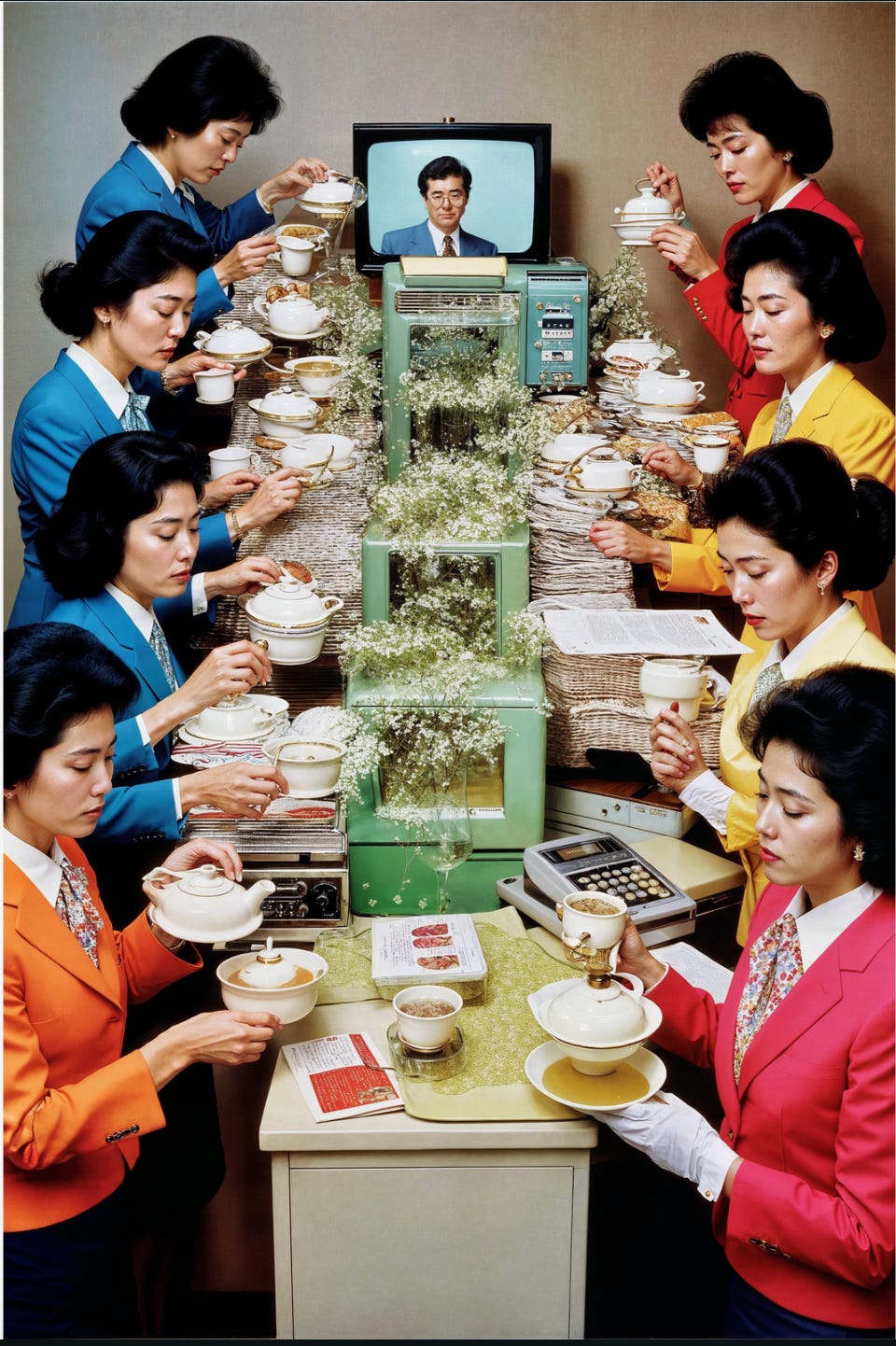 Emi Kusano showcases new pieces from her Office Ladies series, where AI self-portraits of women perform repetitive gestures inspired by 1980s Japanese office culture. Through these dreamlike scenes, she questions femininity, societal expectations, and the blurred lines between nostalgia and automation.